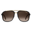 Explore the stylish appeal of Carrera 133/S 57 2M2/HA sunglasses. These distinguished sunglasses feature a black gold square double bridge frame made from acetate, exuding elegance and sophistication. The brown shaded gradient lenses provide excellent clarity and 100% UV protection, ensuring your eyes are shielded from harmful rays.